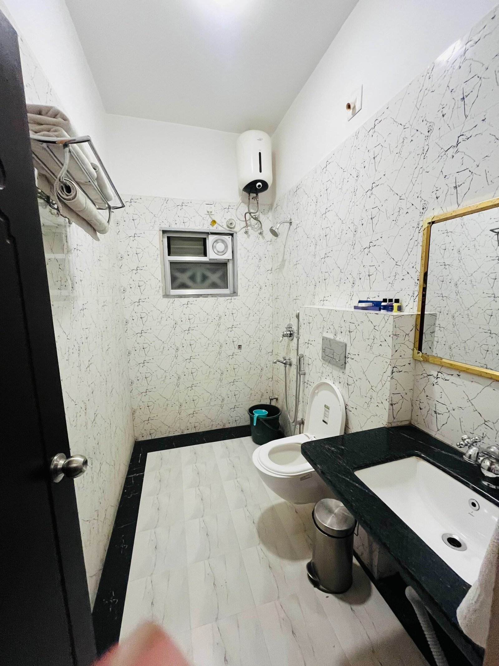 The room features a comfortable Queen Bed, clean linen, and a calm setting designed for uninterrupted rest. Air conditioning keeps the temperature comfortable throughout the day, while daily housekeeping ensures the space remains fresh and well maintained. Ironing facilities are available on request for added convenience.