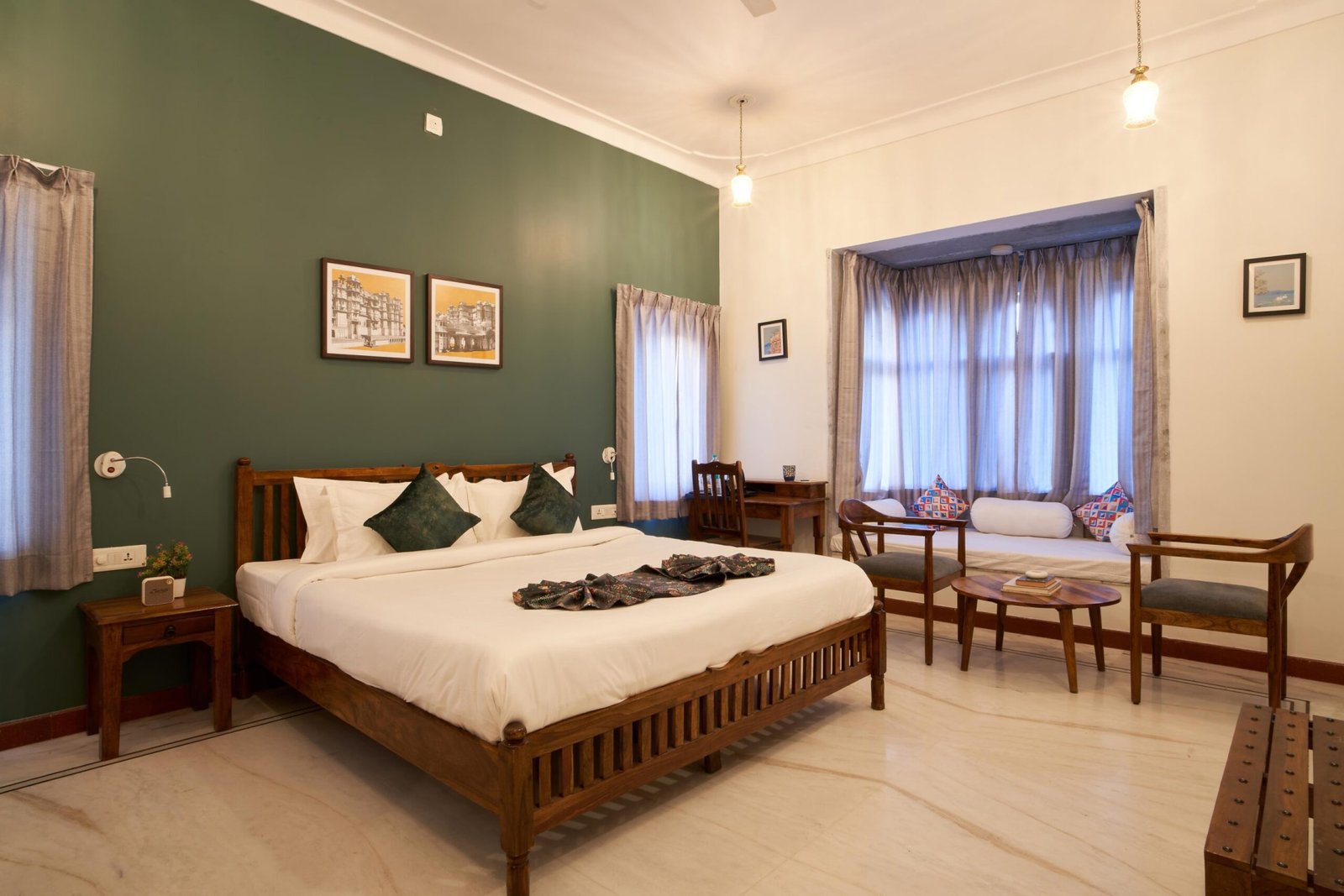Whether you are visiting Udaipur for business or leisure, the Executive Suite provides a quiet retreat where you can slow down, work comfortably, or simply relax. Guests can enjoy meals through in-room dining or step out to explore the hotel’s restaurant and rooftop spaces.